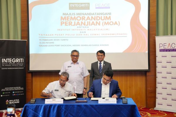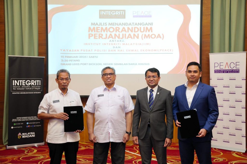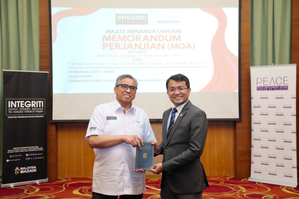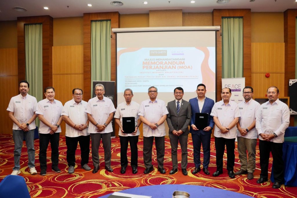 Yayasan Pusat Polisi dan Hal Ehwal Ekonomi Malaysia dan Institut Integriti Malaysia pada 15 Februari 2025 bertempat di Hotel Grand Lexis Port Dickson telah menandatangani MOU untuk bekerjasama dalam menganjur program-program penerbitan dan pendidikan seperti penerbitan buku dan debat antara universiti bagi meningkatkan kesedaran masharakat terhadap kepentingan tatakelola dan integriti dalam kehidupan seharian. Semoga usaha ini diberkati dan dirahmati Allah SWT.