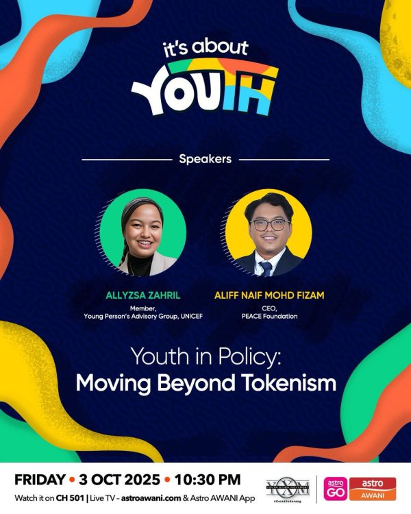 Join Allyzsa Zahril (UNICEF Young Person’s Advisory Group) and Aliff Naif Mohd Fizam (CEO, PEACE Foundation) to discuss Malaysia’s progress, the current gaps, and what youth really want to see from policymakers.